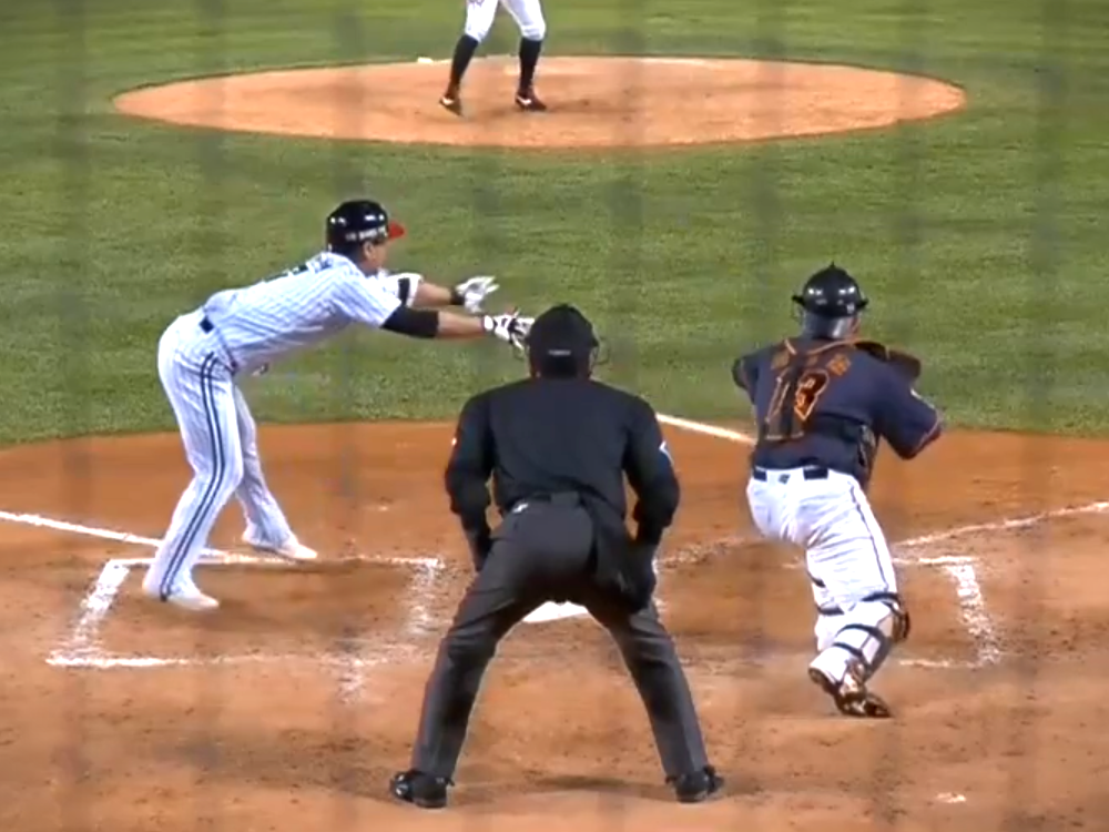 야구규칙의 86페이지 6.01 방해, 업스트럭션에 있는 내용 중 포수가 공을 갖지 않고 본루 위 또는 그 앞으로 나가거나 타자 또는 타자의 배트를 건드렸을 경우는 다 같이 포수의 인터피어가 된다. 특히 포수가 공을 갖지 않고 본루 위 또는 그 앞으로 나갔을 경우에는 타자가 타자석 앞에 있었느냐 없었느냐, 또 치려고 하였느냐 안 하였느냐에 관계없이 포수의 인터피어가 된다.