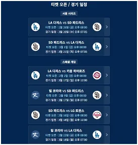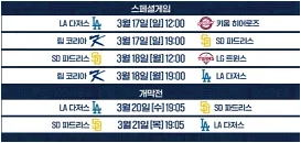 | SD 파드리스 | 2024년 03월 01일 금요일 오후 8시 | LA 다저스 |