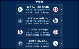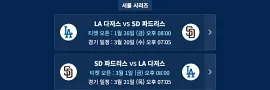 | SD 파드리스 | 2024년 03월 01일 금요일 오후 8시 | LA 다저스 |