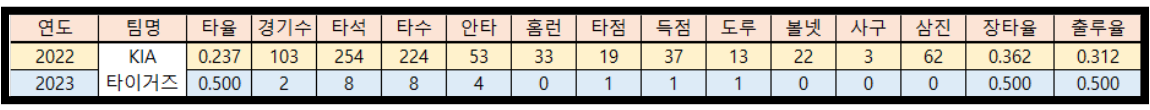 소속 : KIA 타이거즈(2022~), 등번호 5번