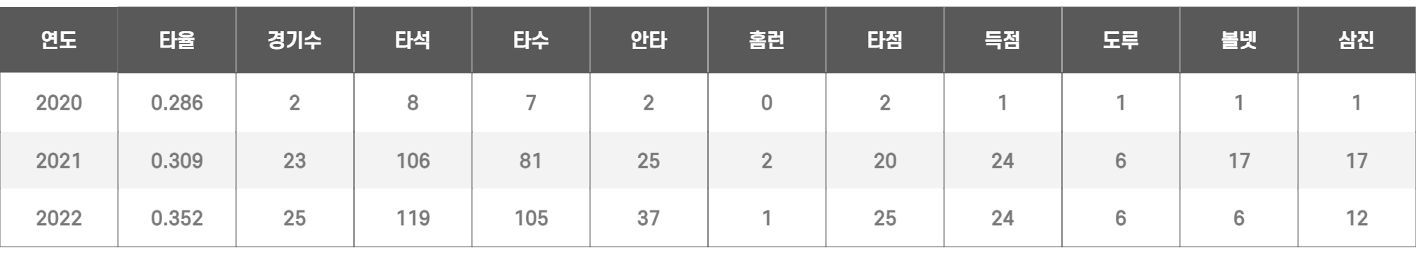 3라운드 전체 25순위로 SSG 랜더스에 지명받으며 프로에 발을 들여놓았다. 내부에서 좋은 평가로 인정받는 선수인만큼 1군 스프링캠프 명단에 포함되어 훈련을 받으며 1군 시범경기에서도 백업으로 모습을 보여주었다. 그리고 시범경기에서 대수비로 나와 SSG의 짐승 수비의 모습을 보여주기도 하였다. 개막전 엔트리에는 선발되지 못했지만 4월 29일 드디어 1군 엔트리에 등록되었다. 그리고 당일 SSG 랜더스가 10-3으로 이기고 있는 8회 초 수비에서 모습을 드러냈다. 주장 한유섬이 빠지면서 우익수로 나왔다. 두산의 8회 초 두 번째 타자인 허경민의 우익수 앞 땅볼로 데뷔 첫 수비 공을 잡았다. 그리고 세 번째 타자인 안재석의 타구를 낙하위치로 이동하며 안정적으로 아웃카운트를 잡았다. 첫 아웃카운트를 올리는 수비를 했다. 아쉬운 건 데뷔 첫 타석을 못 가진 것이다. 8회 말 삼자범퇴로 공격이 마무리되고 9회에 두산의 공격을 막아내며 타석의 기회는 없었다. 그래도 데뷔 전 수비에서는 편안한 느낌을 주었다. 앞으로의 출장은 어떻게 될지 모르지만 발목통증으로 1군 엔트리 말소된 최지훈을 기회로 자신의 실력을 보여준다면 앞으로 기회는 더 많이 생길 것이라고 생각한다. 짐승의 계보를 이어가는 젊은 선수로서 SSG 랜더스의 외야진에 젊은 기운을 넣어주길 바라본다.